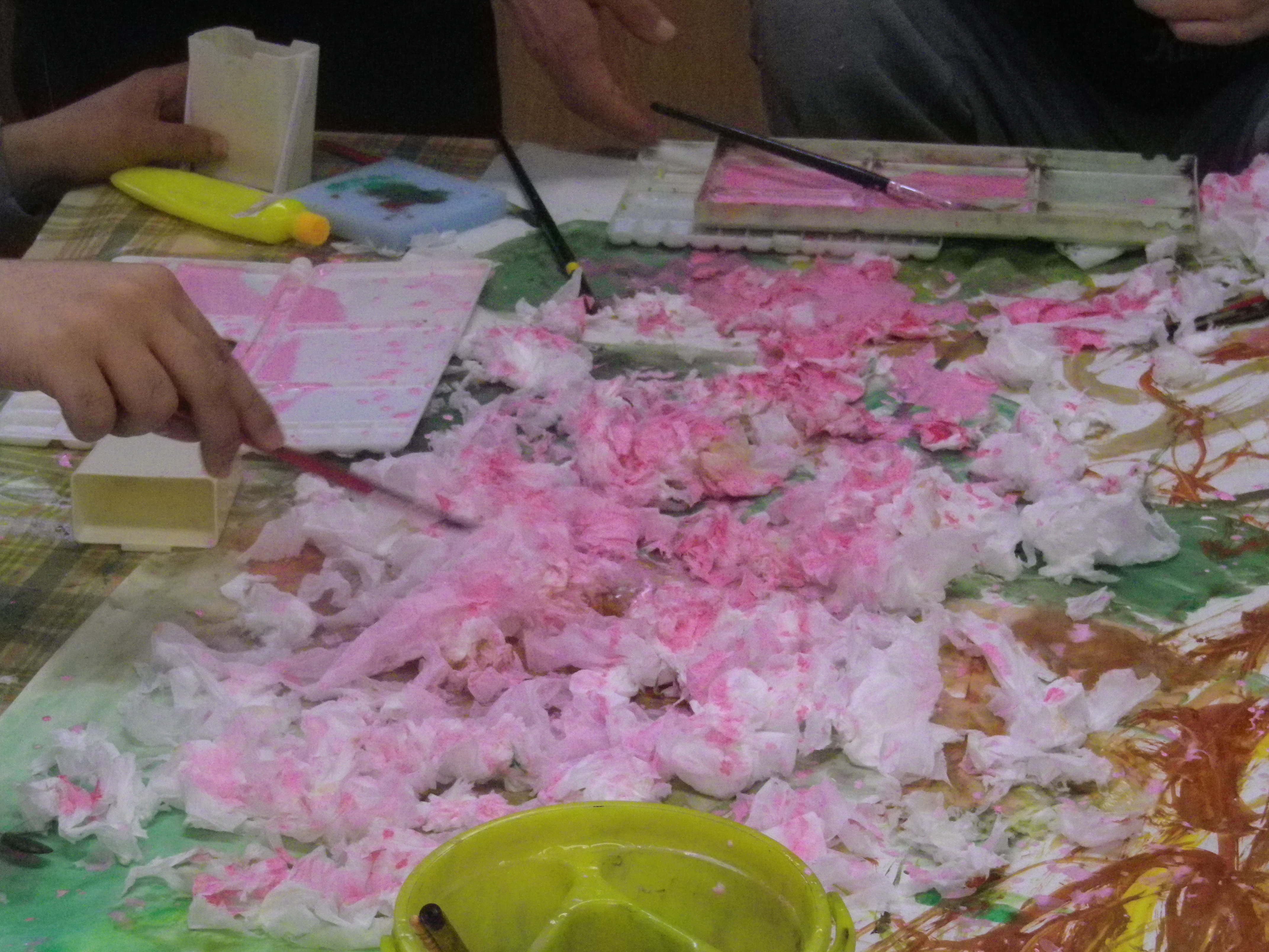今日の和泉先生の創作活動では一足お先に満開の桜を作りました。