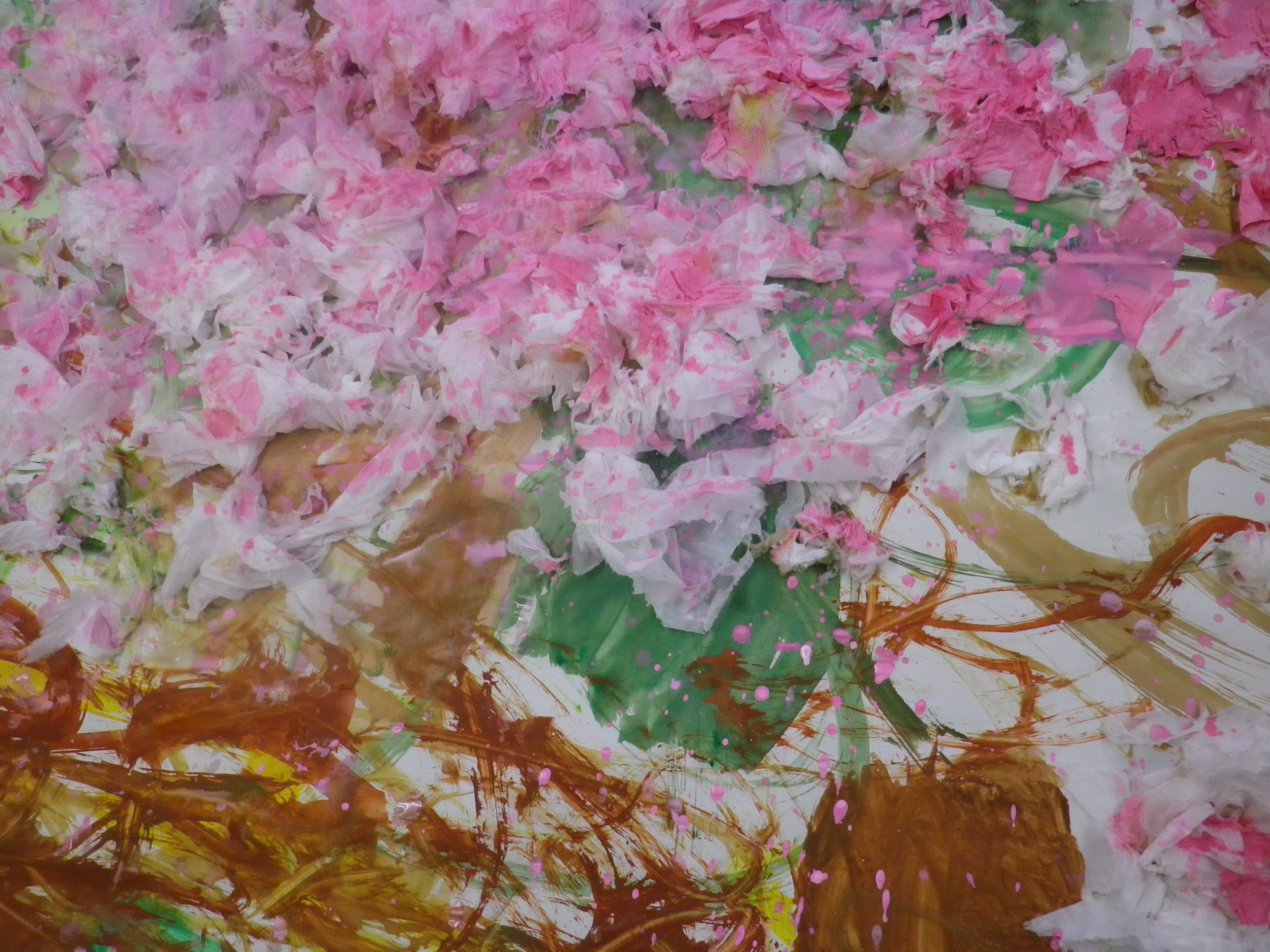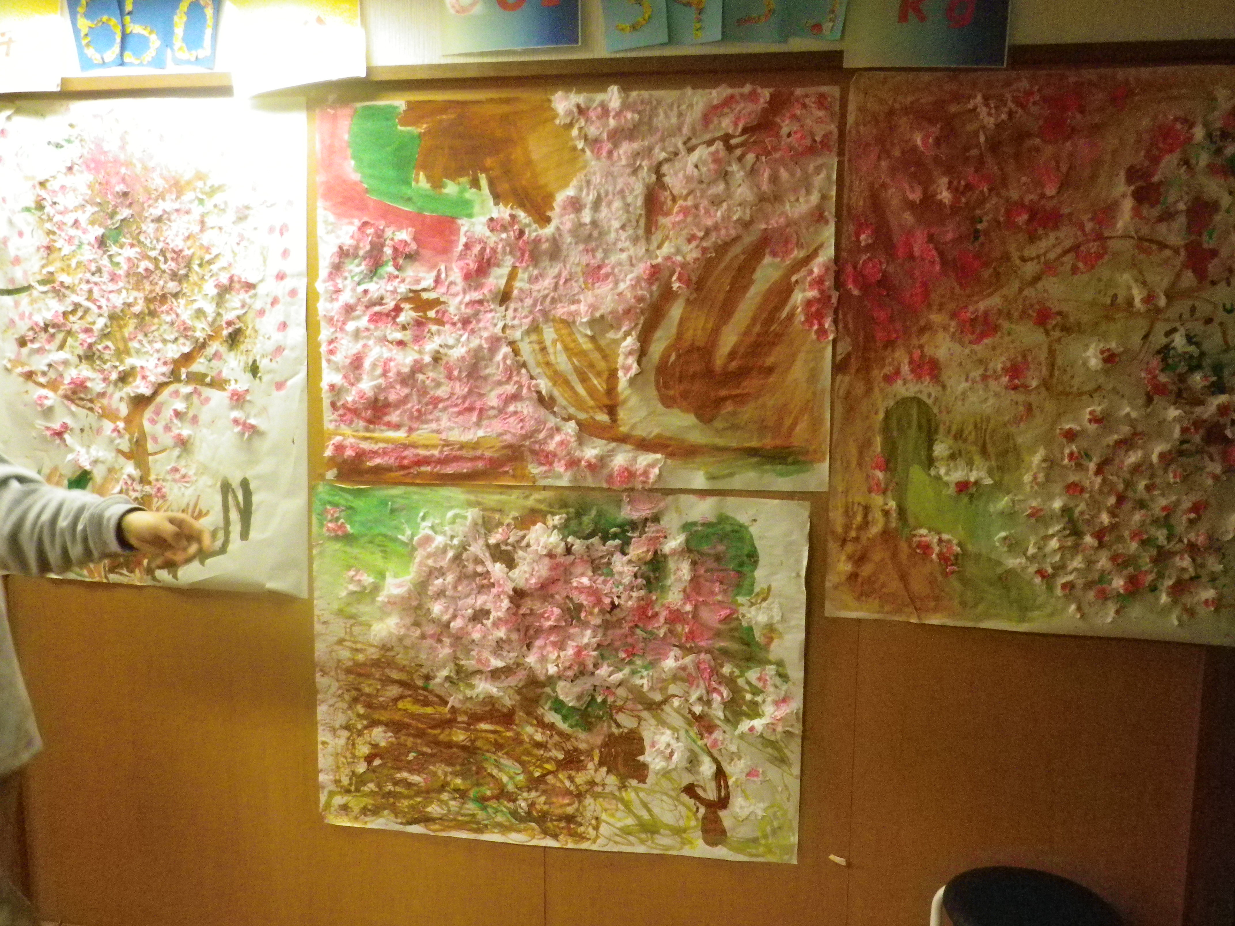 ピンクの桜を描いていると、なぜかみんなウキウキ気分で楽しい時間になりました。